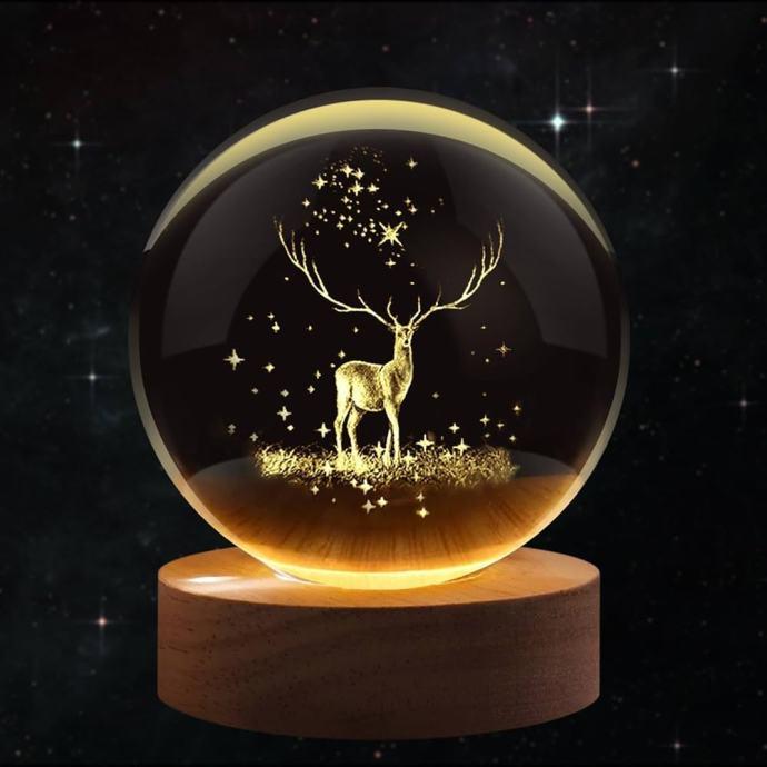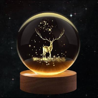 3D Laserski gravirana kristalna kugla, dekorativna noćna led svjetiljka,