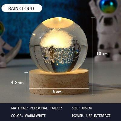 【Veličina baze i LED dioda】Veličina baze 6 cm imitacija drva, 6 LED dioda toplo bijele boje s USB priključkom, veličina kristalne kugle je 6 cm