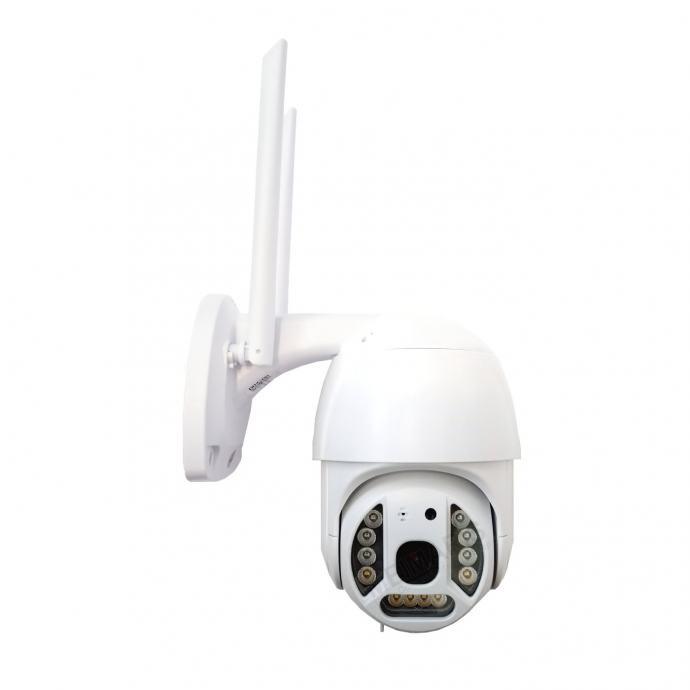 Novi model rotirajuće sigurnosne kamere s WiFi i detekcijom pokreta Nova poboljšana i još snažnija bežična WIFI nadzorna kamera pogodna za vanjsku uporabu. S LED projektorom, infracrvenim za noćno snimanje i mogućnošću praćenja slika s raznih uređaja istovremeno !
