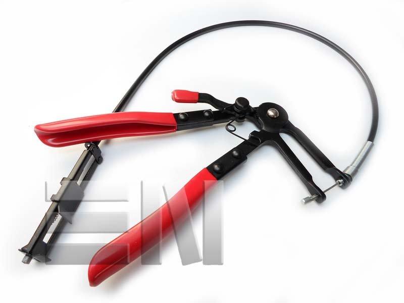 Kliješta za šelne -obujmice sa produžetkom - sajlom za montažu / demontažu samostezajućih šelni kod rashladnog sistema, uljnih cijevi ili cijevi goriva na teško dostupnim mjestima.