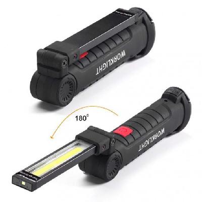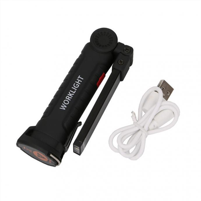 Radno svjetlo W-52 COB 300LM Rotacija 180 +180 stupnjeva LED USB punjiva radna svjetiljka crna COB LED + 1LED usmjereno svjetlo, izuzetno jaka svjetiljka manjih dimenzija s jakim magnetom sa donje strane kućišta i preklopnom kukicom za objesiti. Punjiva putem USB konektora (USB kabel priložen) sa led pokazivačem napunjenosti.