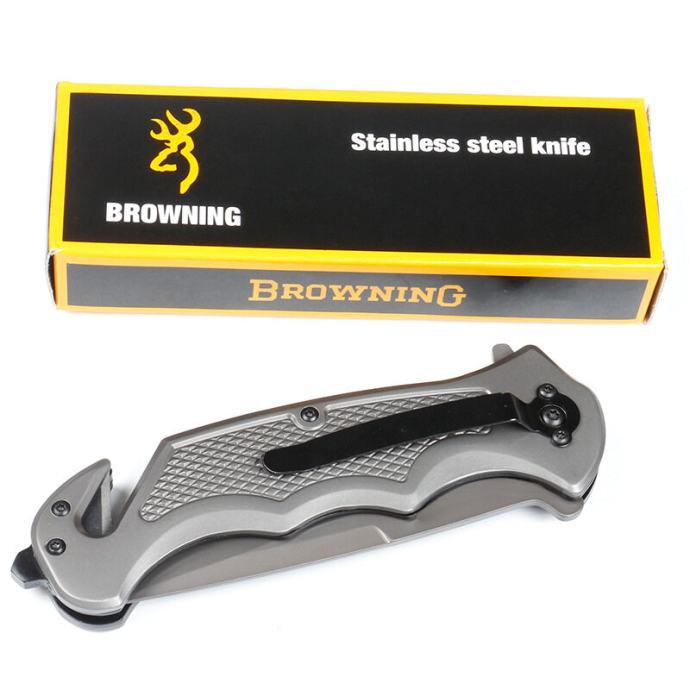 Preklopni nož Browning F140, ovaj izuzetno izdržljiv i otporan cijeli izrađen od metala, lovačko-ribolovni kamping nož, prilagođen za otvaranje jednom rukom, sa dvije oštrice (posjeduje oprugu, skakavac). Survival Pocket vrhunske kvalitete.