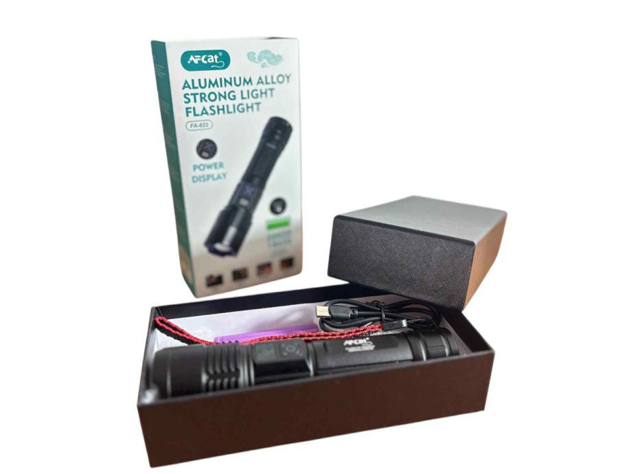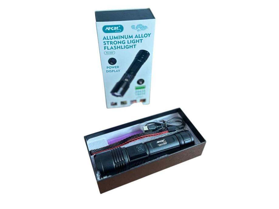 USB Punjiva Led Svjetiljka AFCAT FA-622 TG, USB - C , zoom - ručna, punjiva, univerzalna, pogodna za svakodnevnu upotrebu i za planinarenje, lov, ribolov, općenito boravak u prirodi. Baterijska svjetiljka jako svijetli snažnim ujednačenim svjetlosnim tokom, domet joj je nekoliko stotina metara.